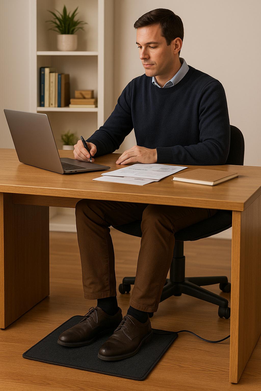 Електрическата подложка за крака 50×50 см е практично решение за хора, които прекарват дълго време седнали на бюро или прави, без активно движение. Особено удобна е за служители в офиси, рецепции, магазини, производствени линии или складове.